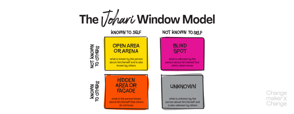 Johari’s window, devised by Joseph Luft and Harry Ingham, is a popular tool to increase knowledge about the self. Each quadrant contains the information that is known / unknow by the person as well as known / unknown by others.